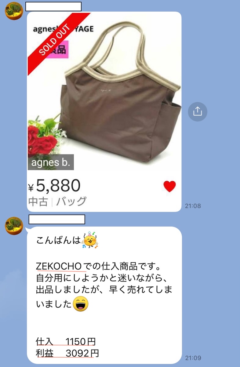 仕入れ 1,100円 → 販売 5,780円(利益 3,850円)