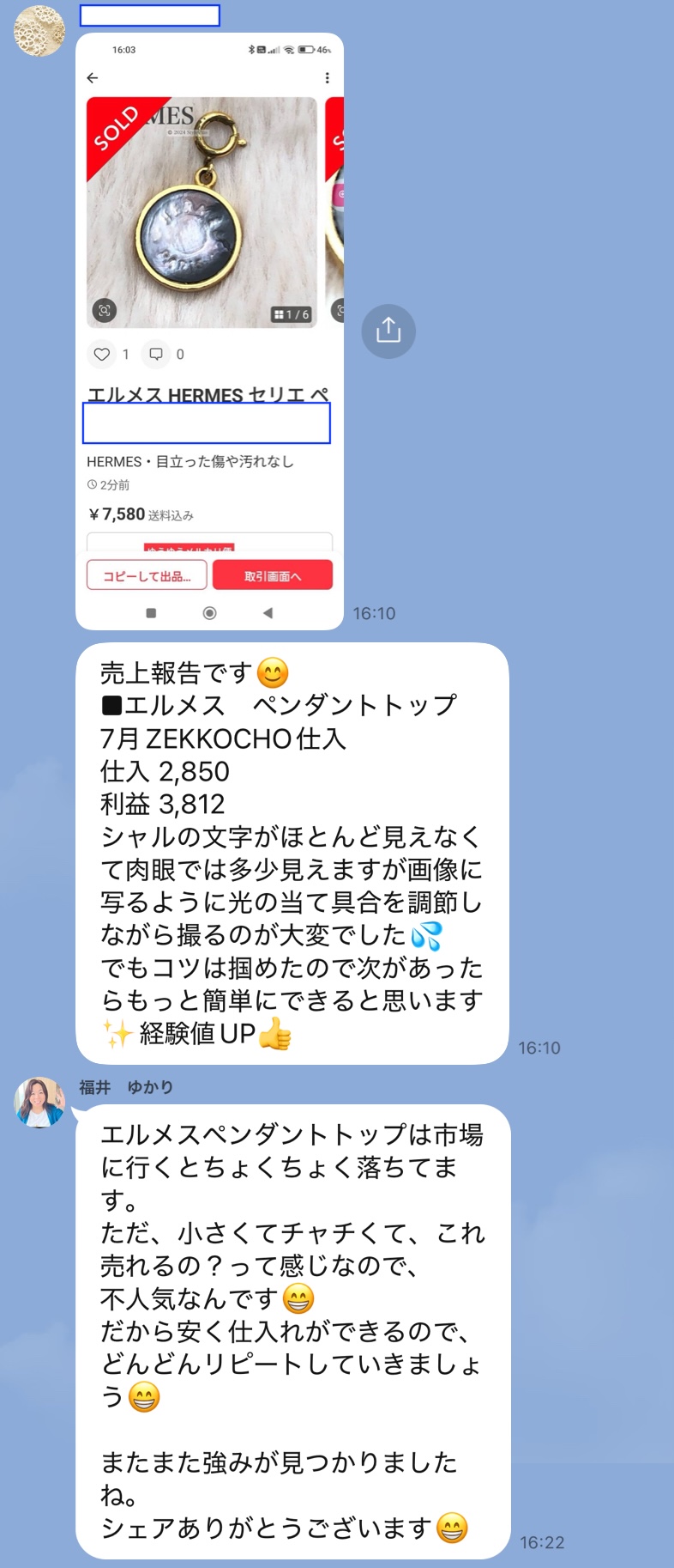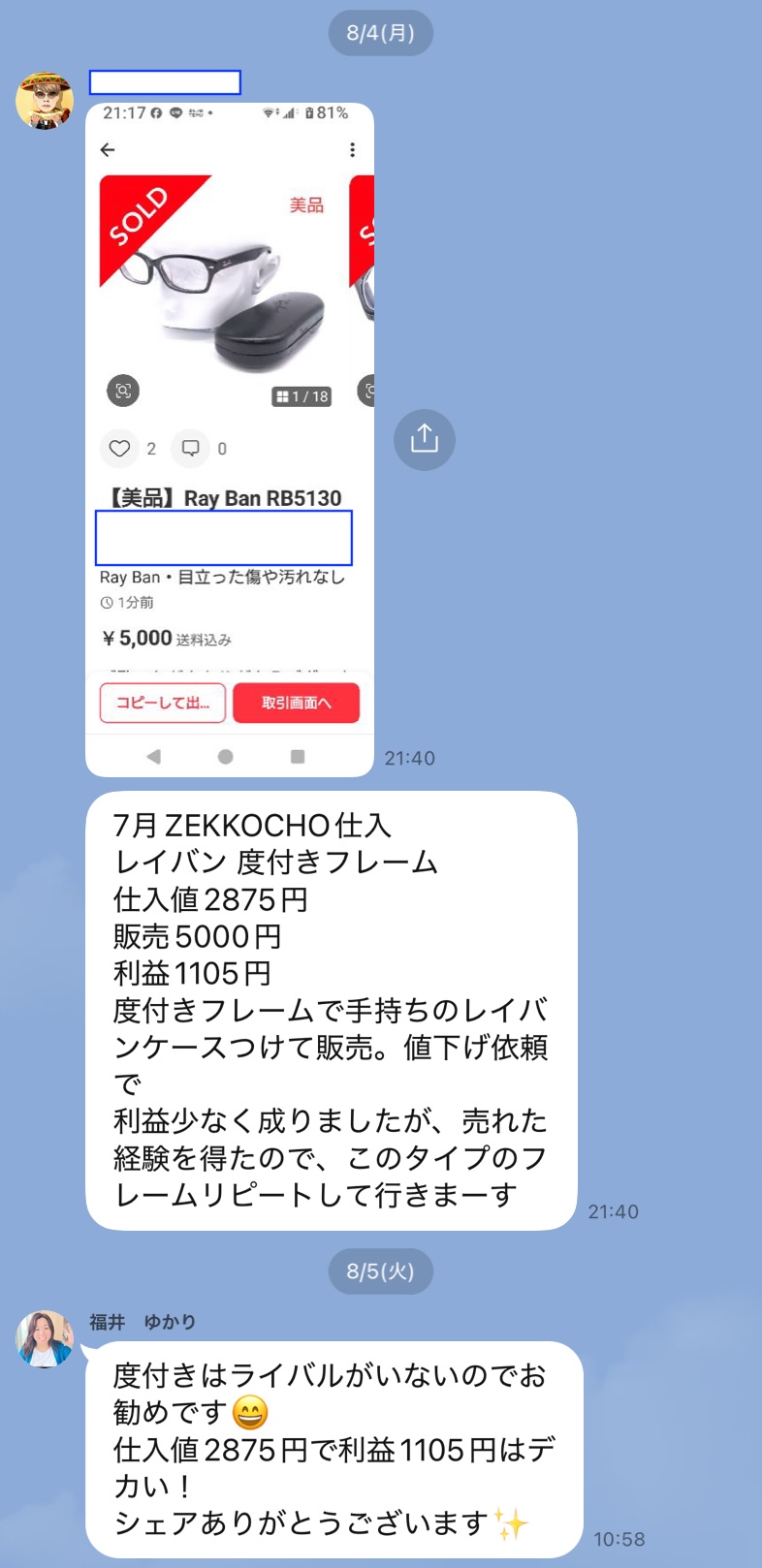 実際のLINEでのやり取りをそのまま