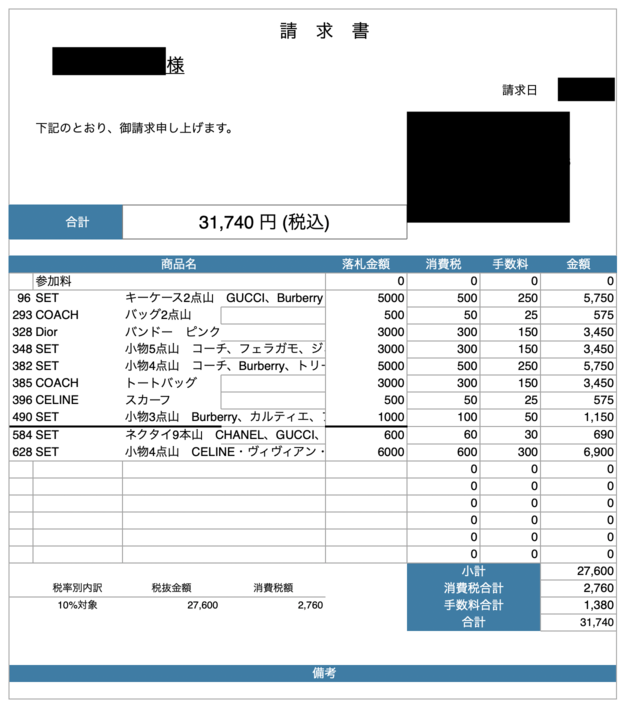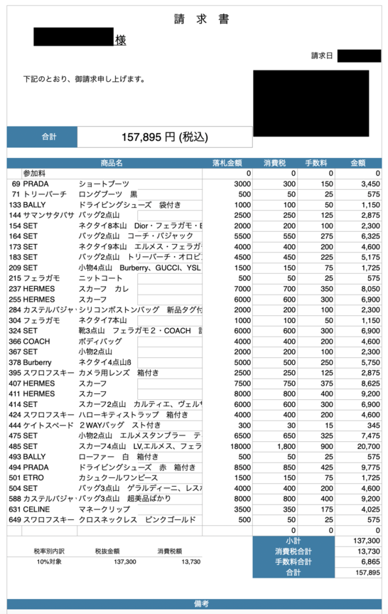実際に仕入れた方の「仕入れ伝票」を公開します。