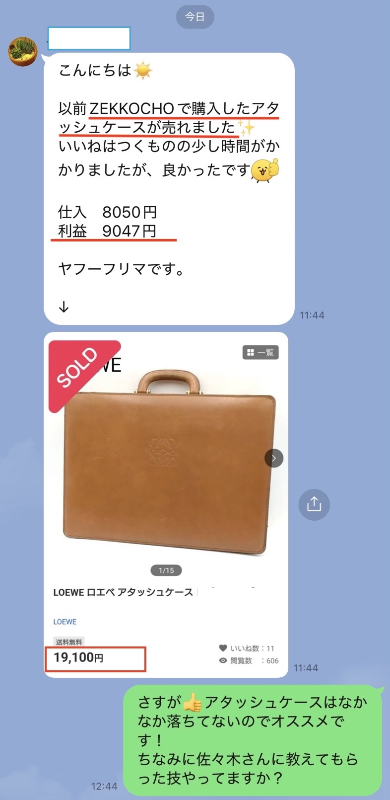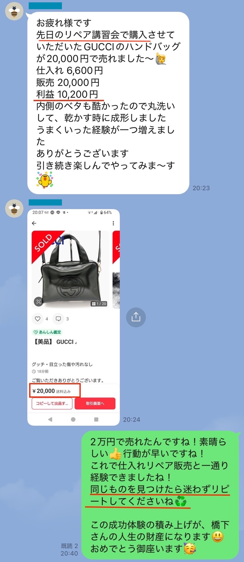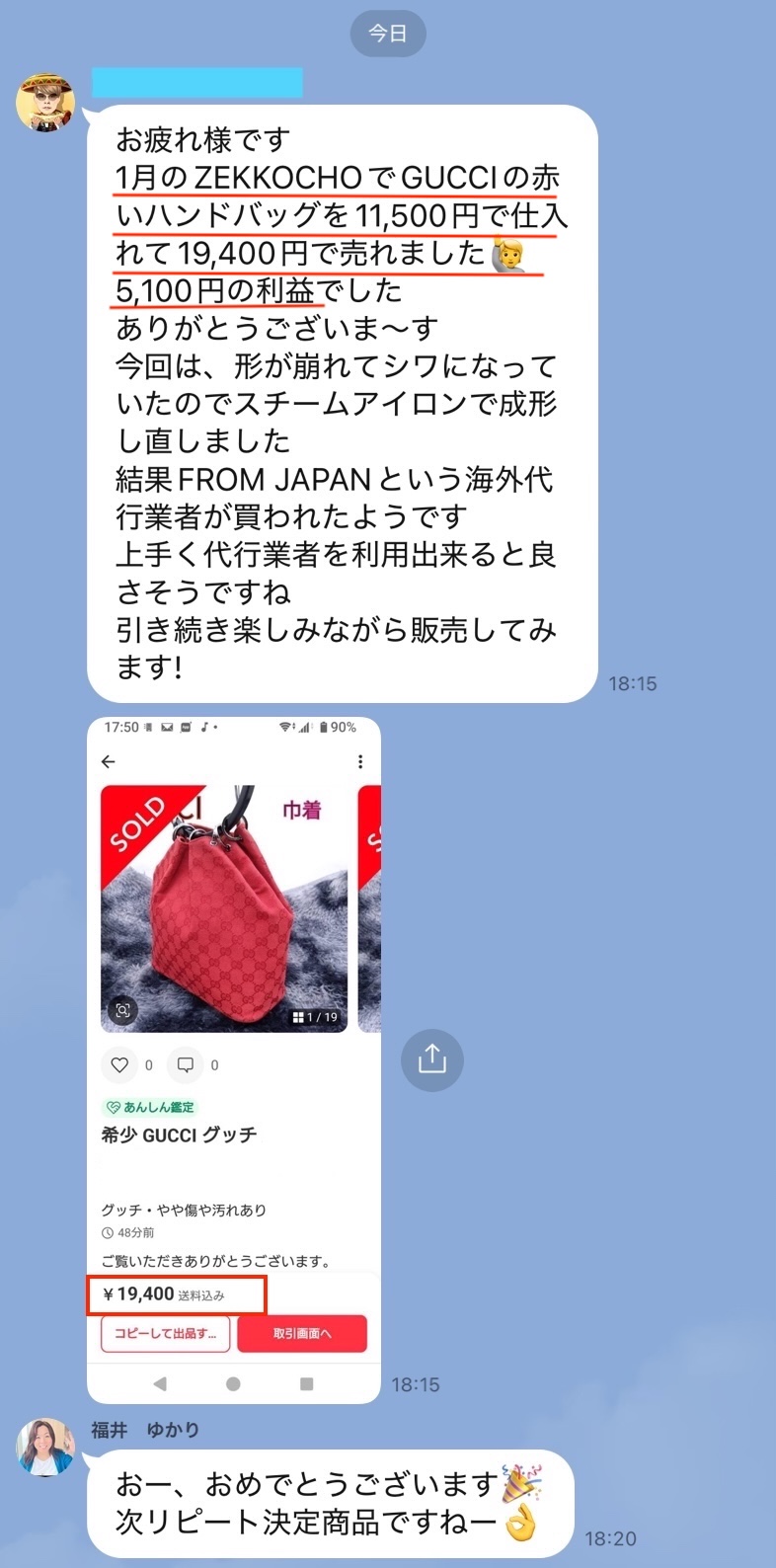 実際に私と参加者のLINEのやり取りそのままのものです。