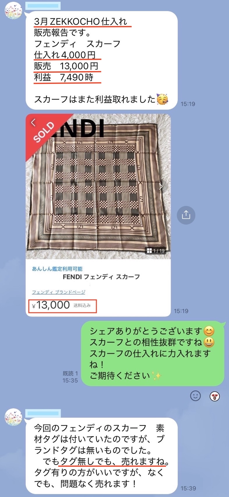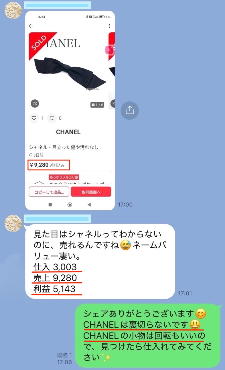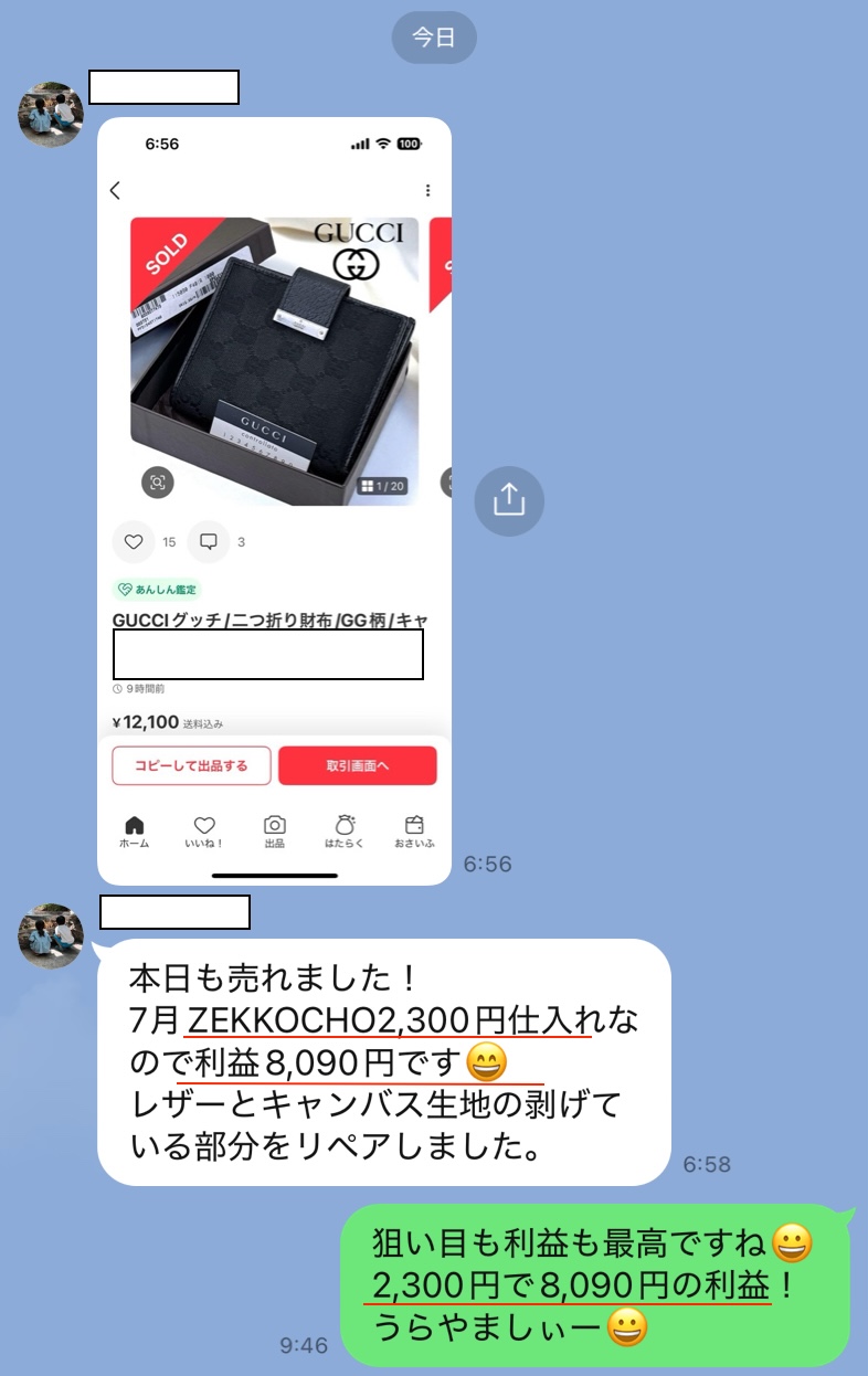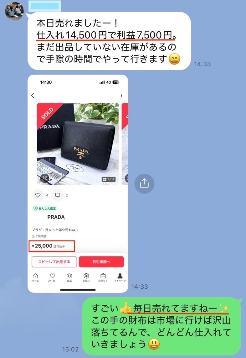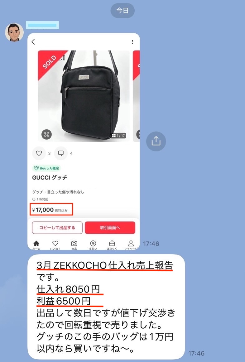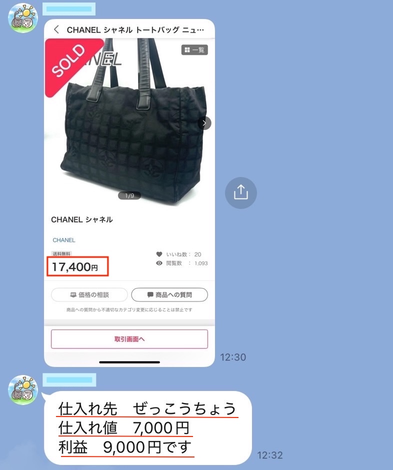 「〇〇円で仕入れた商品が◼️◼️円で売れて、△△円の利益!」