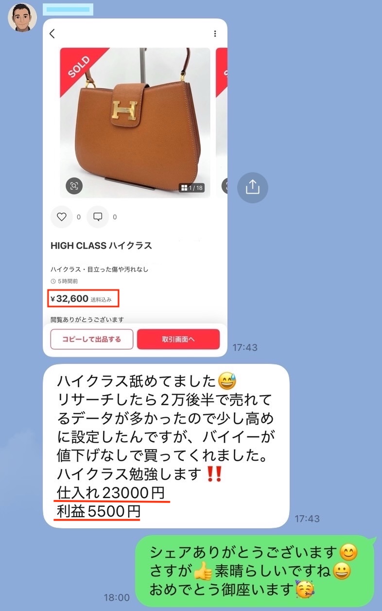 「〇〇円で仕入れた商品が◼️◼️円で売れて、△△円の利益!」